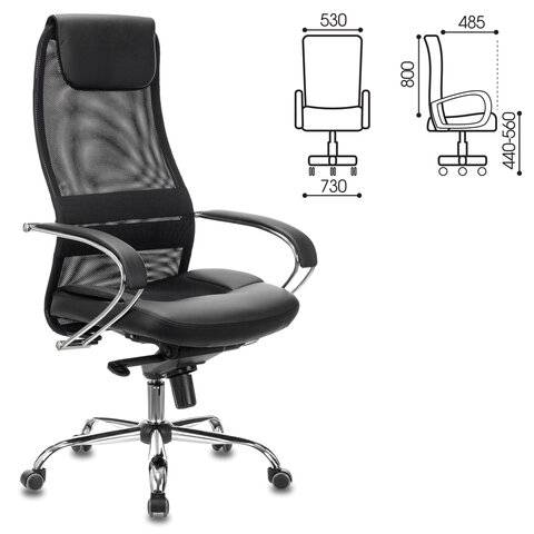 Кресло офисное "Pilot EX-610 CH" premium, хром, ткань-сетка, черное